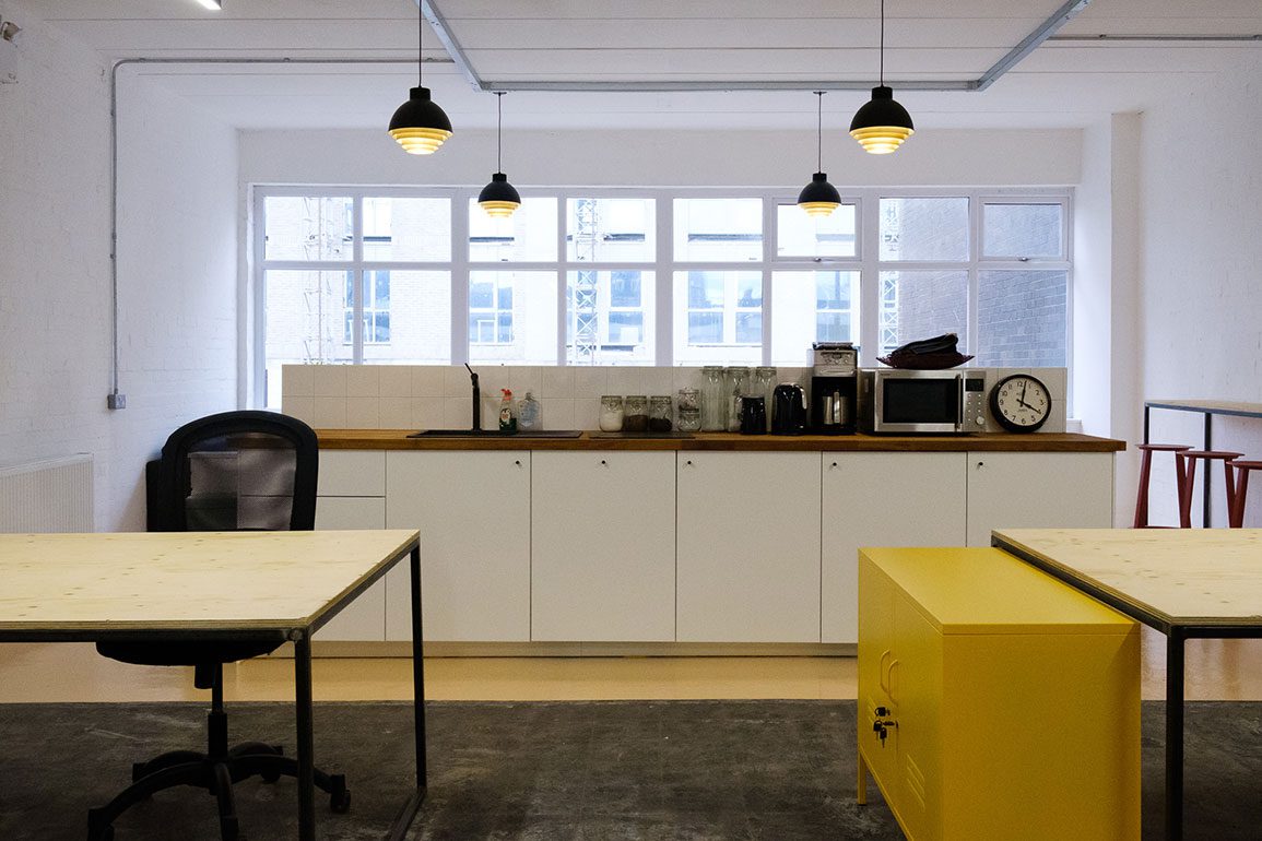 Inside, the ground floor offers a welcoming reception lounge, flexible hot-desking areas, and a shared meeting room unified by a central coffee point. The first floor provides open-plan workstations alongside vibrant breakout spaces and a central kitchen that serves as the social heart of the community.